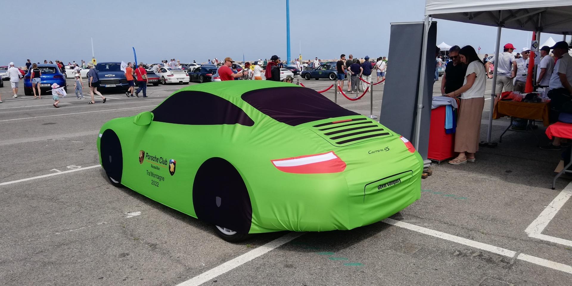 This is a sublimated cover mirroring most of the features of the real car including front grill and back lights, windscreen or wheels. This is a fully customizable cover produced on demand based on each client´s preferences. On arrival of an order, our design team starts putting together a mockup which is the basis for discussion with the client until we arrive to a final design ready for printing. This process ensures our customers can visualize the final product beforehand and is able to incorporate elements each client has in mind, making the final product a unique piece.